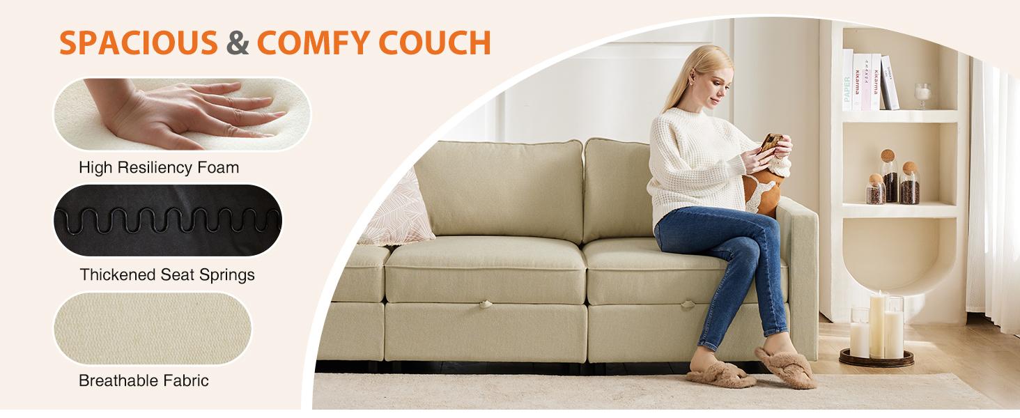 Hidden Storage: Features spacious compartments under each seat to store blankets, toys, magazines, and other essentials, keeping your living area tidy.