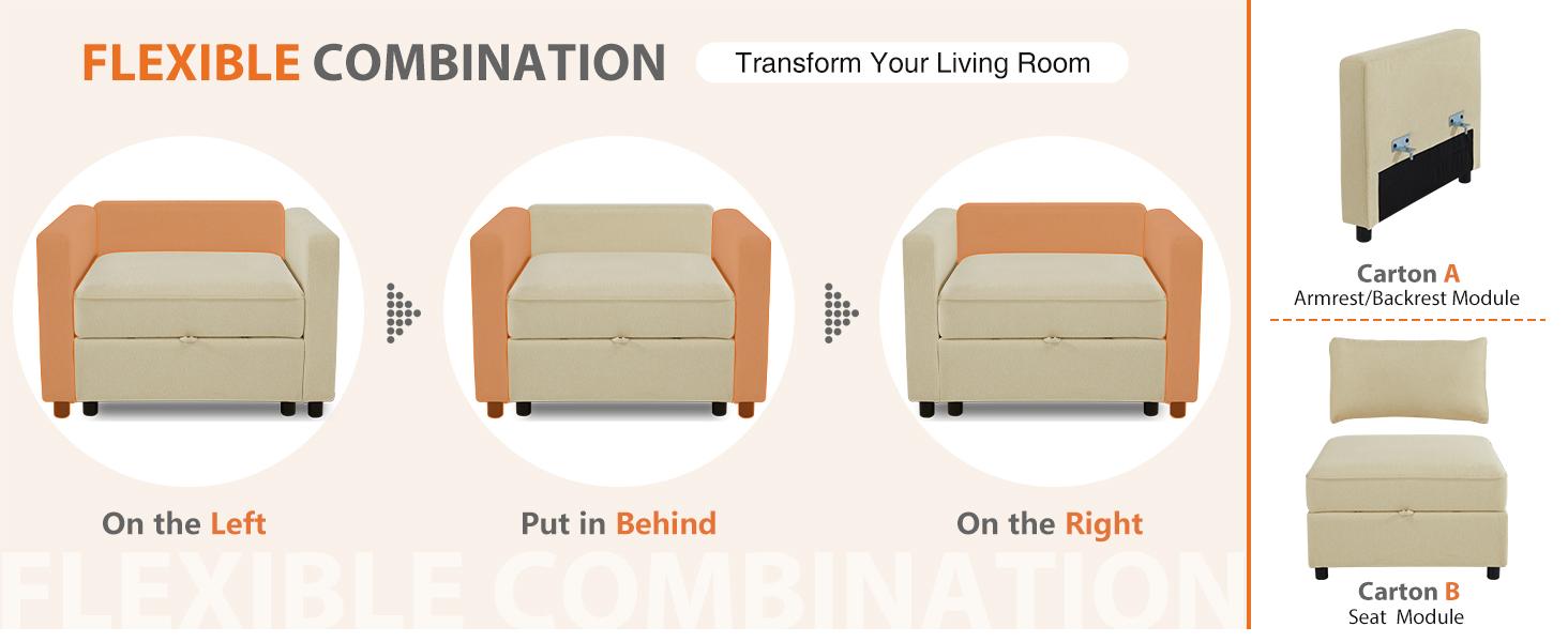 Flexible Configuration: Modular design allows you to customize the sofa layout. Move the armrests and backrests to suit your room setup effortlessly.